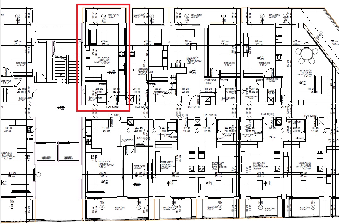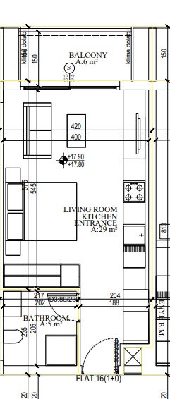 • Studio plan kitchen, living room, bedroom