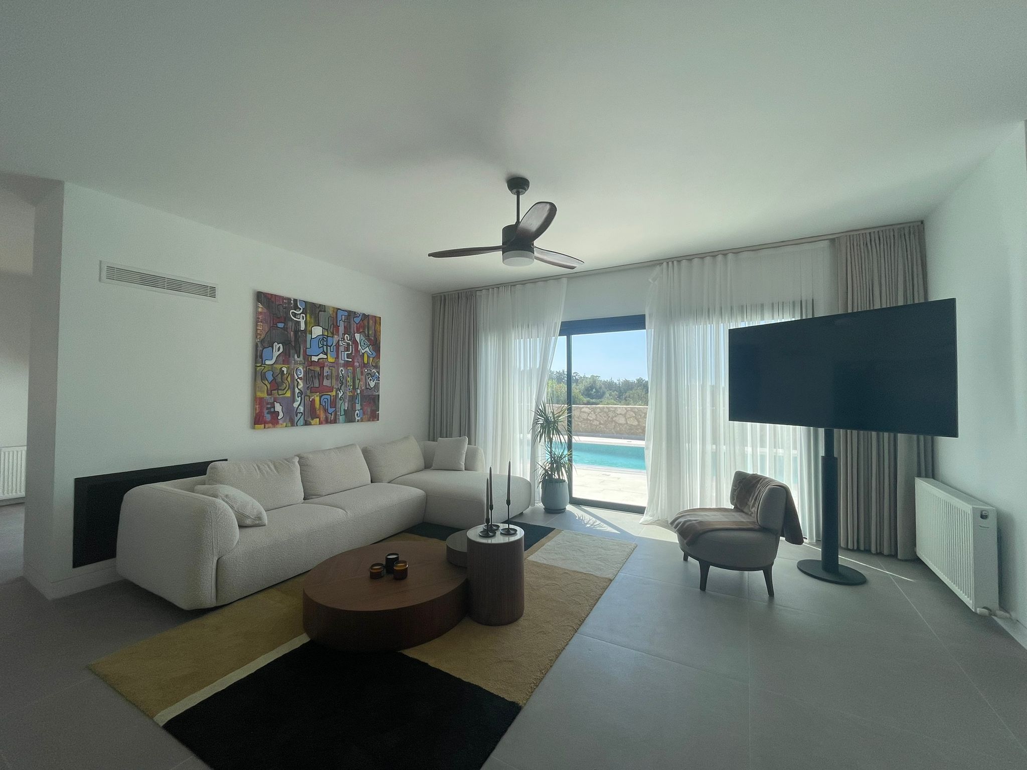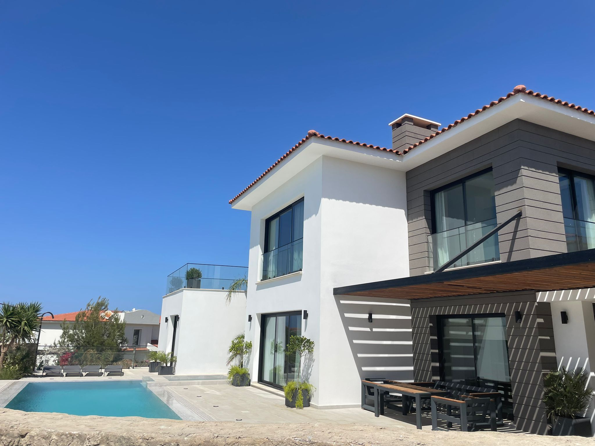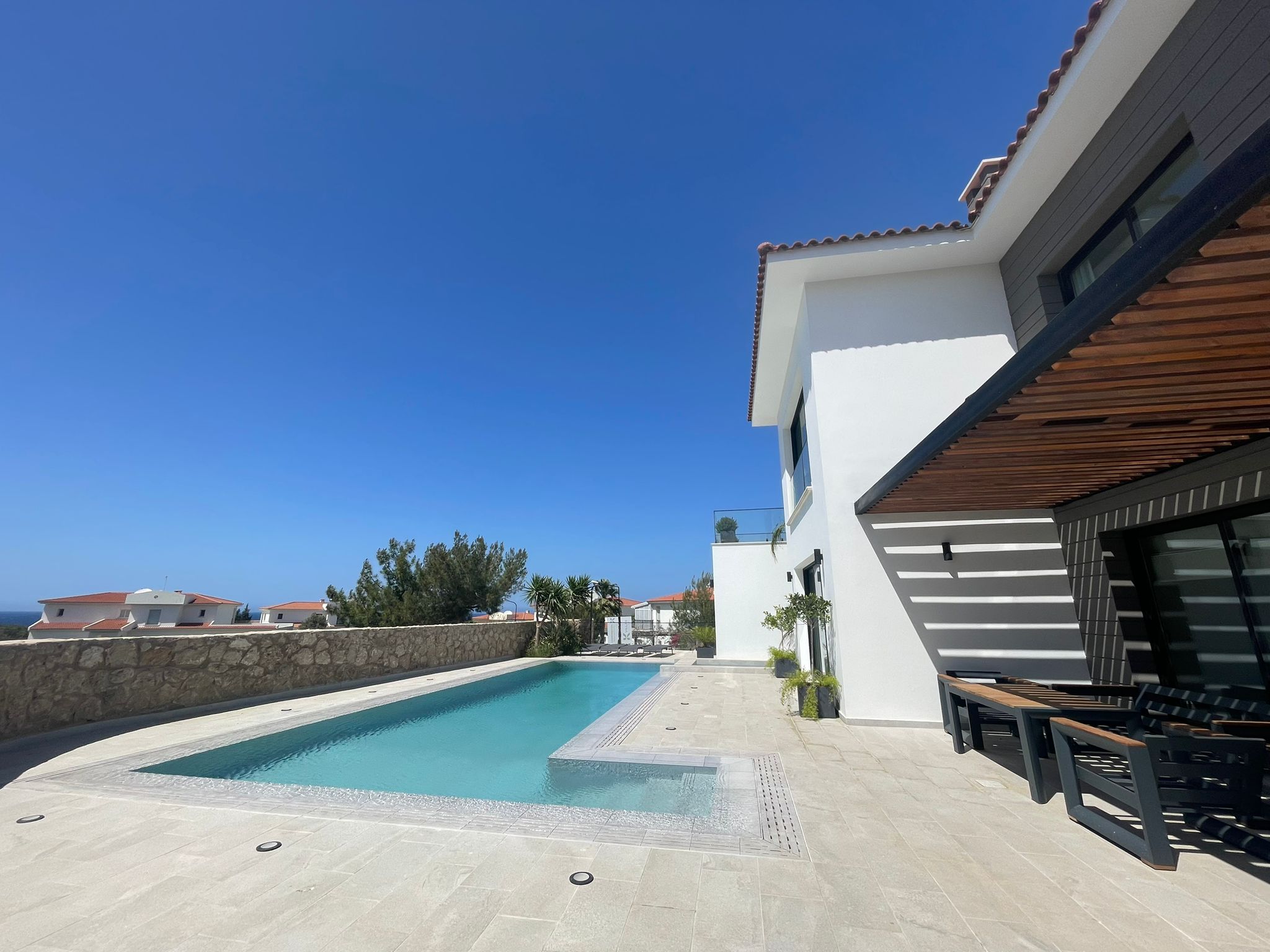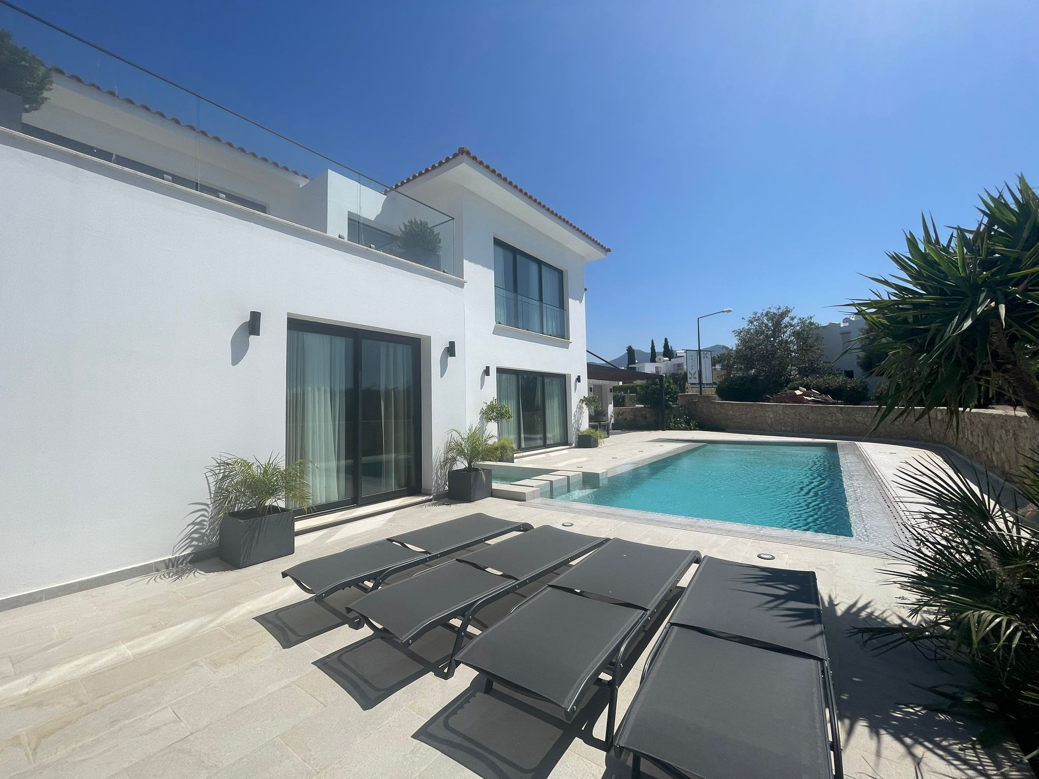 This villa is uniquely designed to meet the comfort and luxury that a family requires, it is located in the serene and calm area of Esentepe, Kyrenia. The villa is within walking distance to the sea, and it's close to Korenium golf club, supermarket, restaurant & cafes, and etc.